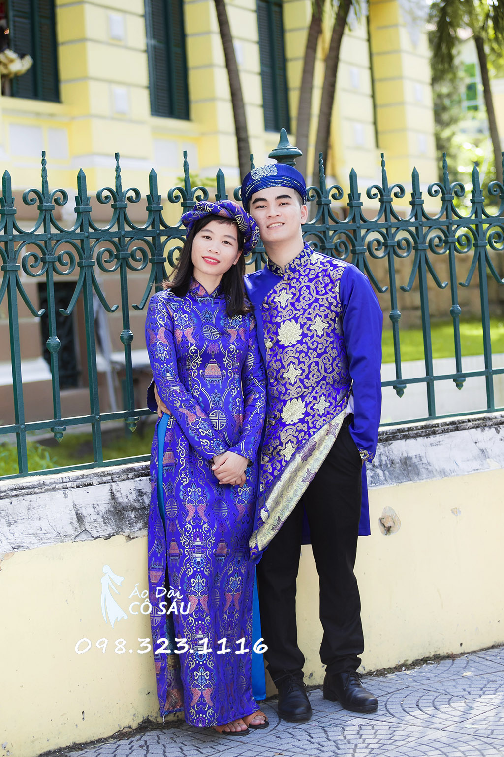 áo dài gấm xanh 2