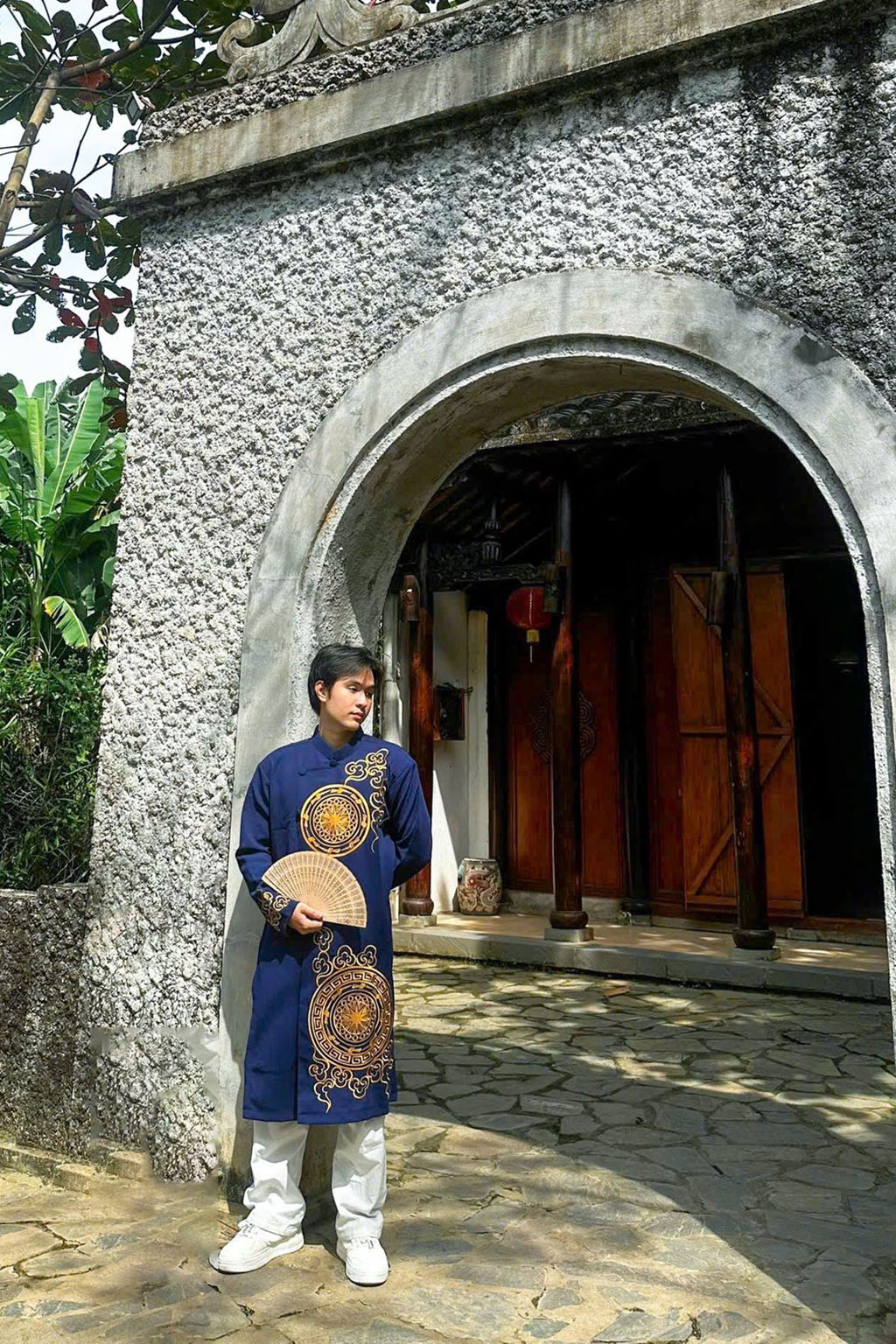 áo dài nam trống đồng màu xanh